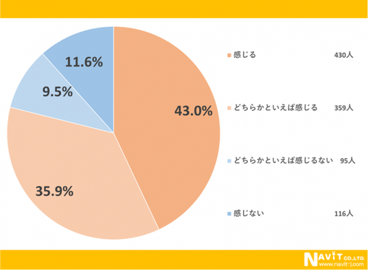 クマの出没に関して不安を感じますか?という質問に対して「感じる」と回答された人が43.0%で「どちらかといえば感じる」と回答された人が35.9%で合計すると78.9%もの人がクマの出没に対して不安を抱いていることがわかります。
