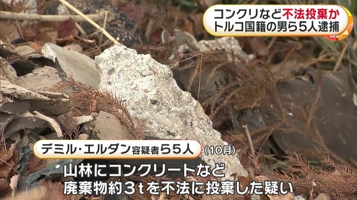 デミル・エルダン容疑者(当時45)ら5人は2025年10月、群馬・渋川市の山林にコンクリートなどの廃棄物約3トンを不法に投棄した疑いが持たれている。