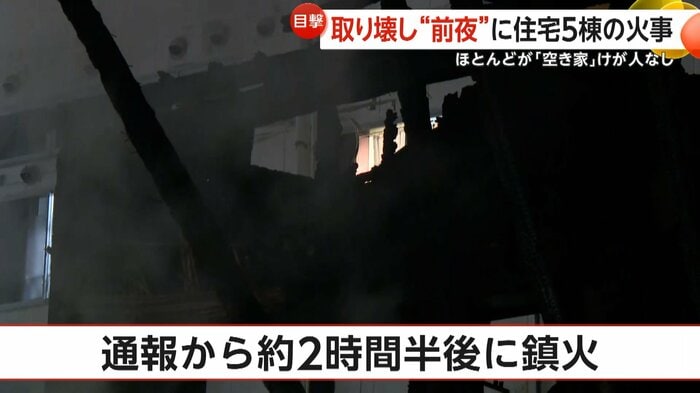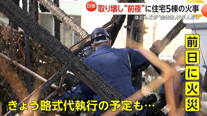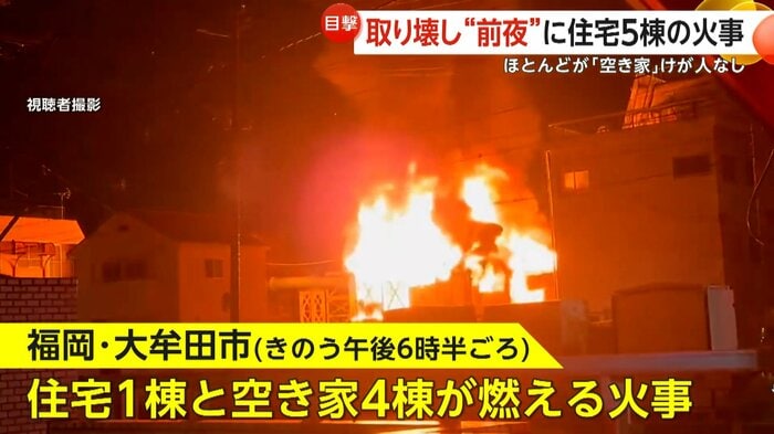 福岡・大牟田市で4日、住宅1棟と空き家4棟が燃える火災が発生した。燃えた空き家のうち、1棟が倒壊のおそれがあり、翌5日に略式代執行で取り壊される予定だった。