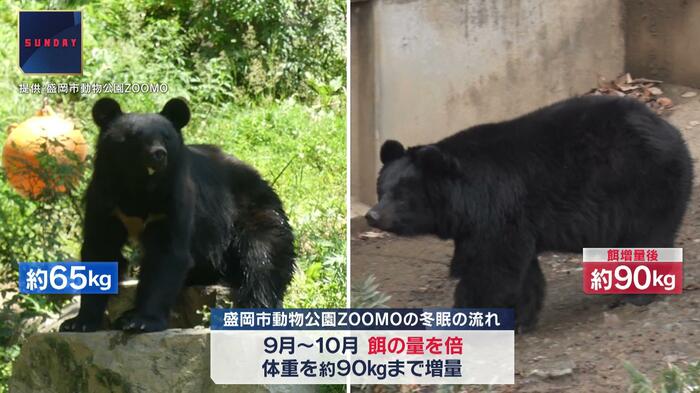 毎年9月から10月にかけて餌の量を倍にして、体重を約65kgから約90kgにまで増量。
