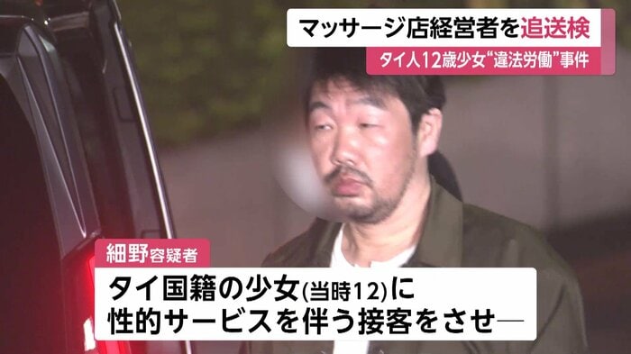 個室マッサージ店の経営者、細野正之容疑者は、タイ国籍の当時12歳の少女に不特定の男性客を相手に性的なサービスを伴う接客をさせたほか、自身にもわいせつな行為をさせた疑いで追送検された。