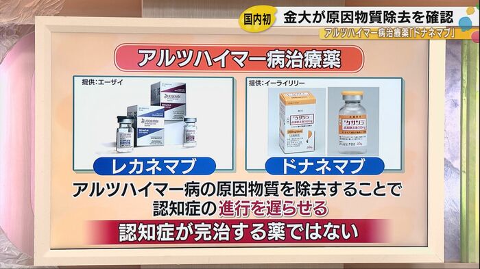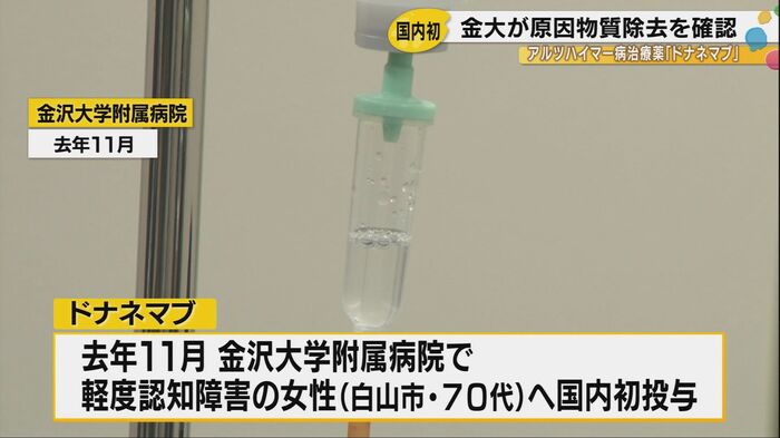 ドナネマブは、アメリカの製薬大手イーライリリー社が開発したアルツハイマー病治療薬だ。2024年11月末、国内で初めて金沢大学附属病院で軽度認知障害と診断された白山市に住む70代の女性へ投与が開始された。