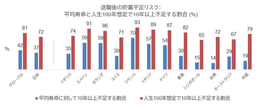 日本の50歳以上の7割超が「100年人生」に少なくとも10年以上の経済的な備え不足、平均寿命ベースでは4割弱が備え不足