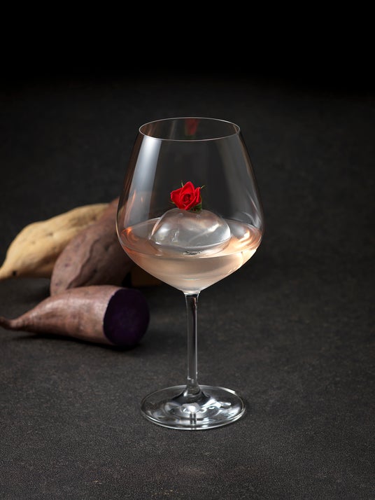 芋焼酎に含まれる香気成分「シトロネール」に着目。芋焼酎のイメージをエレガントに、香りからデザイン、表現したカクテル。