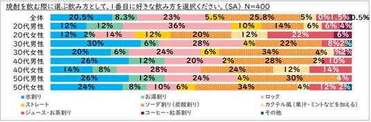 ・20代男女の焼酎に対する印象は、多様な飲み方がトップ