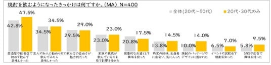 焼酎を飲むようになったきっかけは、「飲んでみたら美味しかった」が上位に。