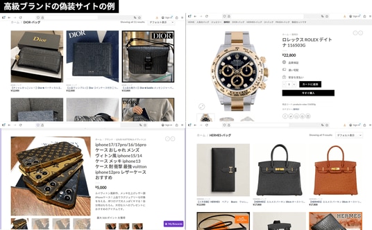 - 高級ブランドも主要な標的対象:コーチ、ディオール、グッチ、ロレックス、ラルフローレンなどのハンドバッグやスニーカー、限定品の偽オンラインストアが45%増加し、ブランドの画像が使用されたり、ホリデープロモーションと書かれたりしています。