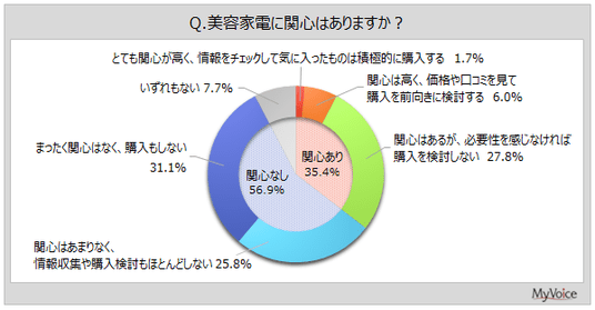 美容家電に関心がある層は約35%です。