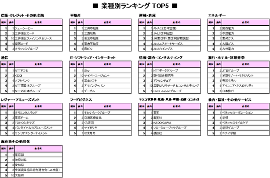 「信販・クレジット・その他金融」では、三井住友ファイナンス&リース(前年10位→3位)と楽天カード(同9位→4位)がランクイン。「エネルギー」は前年トップの東京ガスが圏外となり、関西電力が2位から1位に。東邦ガス(同7位→3位)、九州電力(同8位→5位)が入りました。「IT・ソフトウェア・インターネット」ではサイバーエージェントが前年10位から2位へジャンプアップ。「情報・調査・コンサルティング」は三菱UFJリサーチ&コンサルティングが前年10位から4位入り。唯一すべての順位が入れ替わり変動が大きかったのが「旅行・ホテル・冠婚葬祭」。前年トップの星野リゾート・マネジメントと2位だったJTBグループの順位が入れ替わり、アイコニア・ホスピタリティ(同9位→4位)、日本旅行(同6位→5位)がランクインしました。「フードビジネス」は、前年7位のすかいらーくグループがトップとなり、サイゼリヤが8位から4位に。「政府系その他団体」は大都市を抱える3団体が新たにランクイン。神奈川県(前年6位→2位)、愛知県(同8位→2位)に加え、関西・大阪万博で盛り上がった大阪府も前年の10位から5位に入りました。