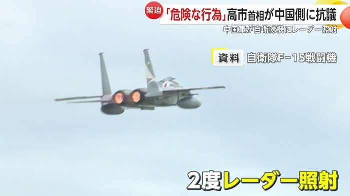 中国軍の空母「遼寧」からJ-15戦闘機が飛び立ち、領空侵犯を防ぐため航空自衛隊のF-15戦闘機が緊急発進した際、2度にわたり、断続的にレーダーを照射されたという。