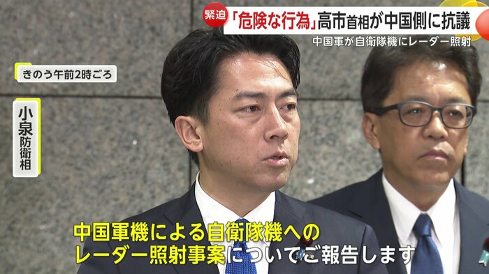 今回のレーダー照射というのは、航空機の安全な飛行に必要な範囲を超える危険な行為です。中国側には強く抗議し、再発防止を厳重に申し入れすることを行いました。