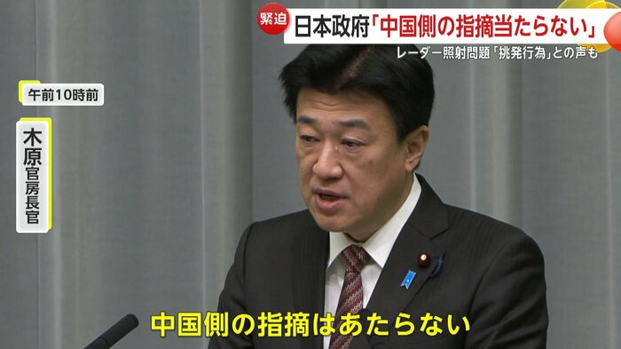 木原官房長官は8日の記者会見で、自衛隊機が中国軍機からレーダー照射を受けたことをめぐり、中国側が「自衛隊機が中国機を深刻に阻害した」と主張していることについて、「自衛隊機は安全な距離を保ちながら任務にあたっていた」として、「中国側の指摘はあたらない」と反論した。