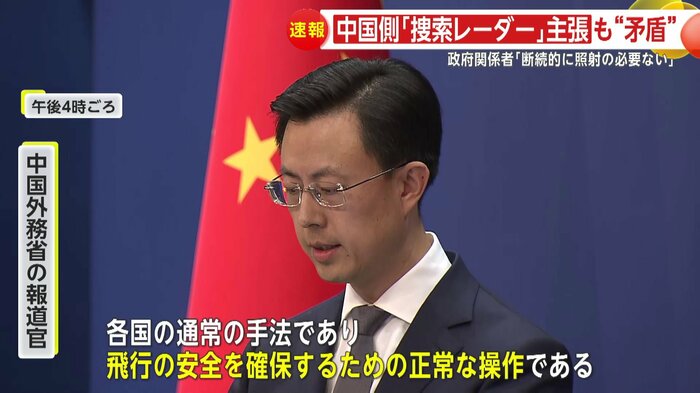 一方、政府関係者は、「捜索のためであれば、今回のように断続的に照射を行う必要は無い」と、中国側の主張を否定した。