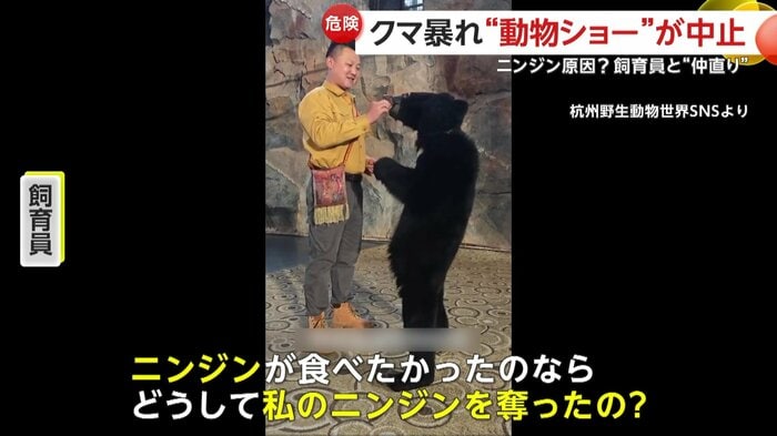 舞台袖の方にいた、もう1頭のクマが飼育員に襲いかかった!