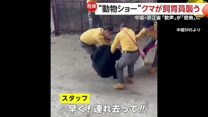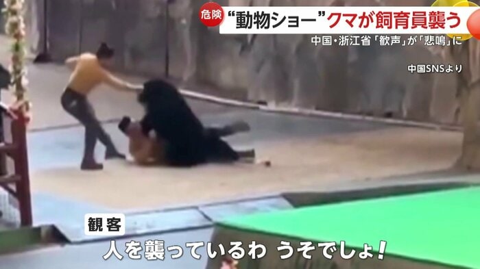 カメラが捉えたのは、動物園のクマが突然、飼育員に襲いかかる瞬間!