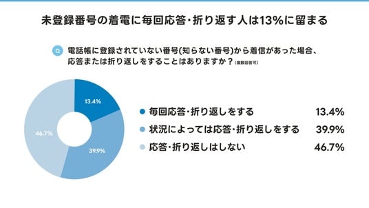 - 未登録番号の着電に毎回応答・折り返す人は13%に留まる