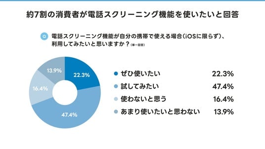 - 約7割の消費者が電話スクリーニング機能を使いたいと回答