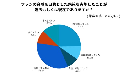 ファン育成を目的とした施策を実施したことが過去もしくは現在でありますか?(単数回答、n=2,079)