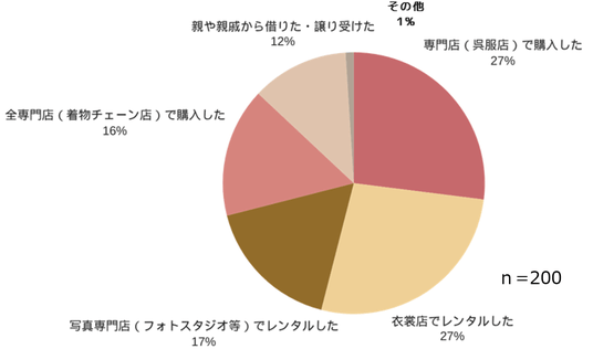 調査対象:3年以内に成人式を迎え振袖を着用した娘のいる親御さま男女200名
