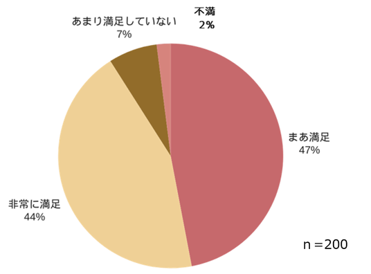 写真の仕上がりや保存方法について「非常に満足」44%、「まあ満足」47%となり、合わせて91%が肯定的な評価を示しました。