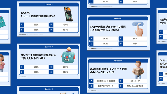 ショート動画白書 vol.7では、2025年の総決算と位置づけ、ショート動画についてさまざまな角度から調査、分析を行いました。現在のショート動画市場や、いまや見ない日はないAIショート動画の実態、ショート動画の購買への影響などを紐解く10の質問を用意し、クイズ形式で読み進められる内容となっています。