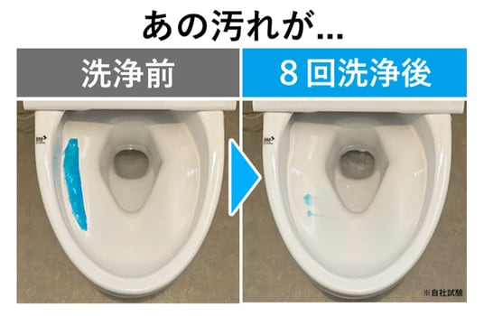 疑似汚物として、便器にこびりつきやすい「粘度の高い水あめ」と「汚物を識別するための食用色素青」を混ぜ合わせ、便器の流水部分に均等に塗布し、洗浄比較を実施。