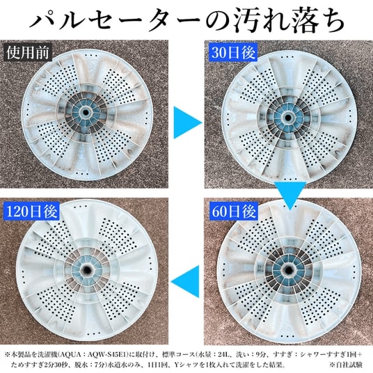 本製品を取り付けることで、「洗濯物の汚れ落ち」「洗濯槽の汚れ落ち」「排水ホースの汚れ落ち」にお役立ていただけます。まさに、一石三鳥です。