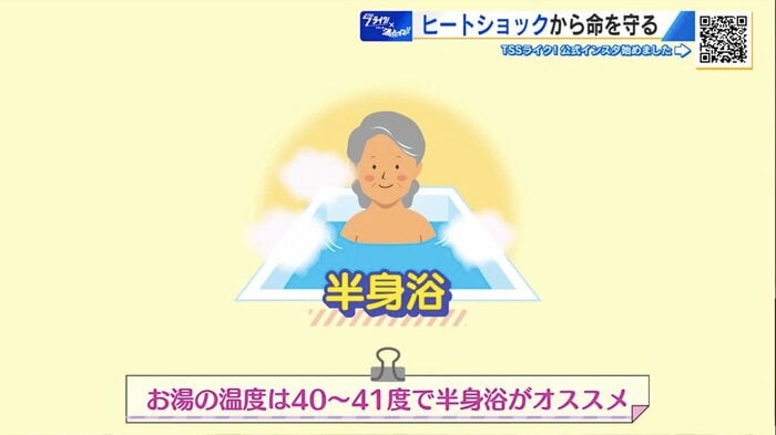 「肩までつかると血管が一気に広がって頭部の血流が下がり意識を失うことがあります。お湯は40~41度、半身浴でゆっくり入るのが大事。肩まで浸かる場合は急に立ち上がらないこと」