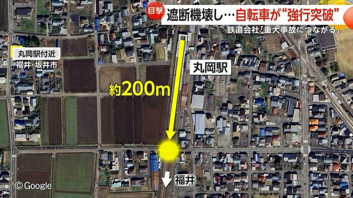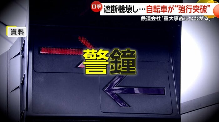 12月初旬に福井・坂井市でカメラが捉えたのは、遮断機を破壊しながら踏切を強行突破する自転車だ。
