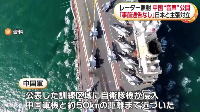 中国軍の戦闘機による自衛隊機へのレーダー照射をめぐり、中国軍は訓練実施を海上自衛隊の艦船に事前に通告したとする音声データを公開した。