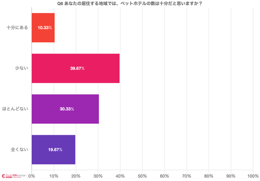 今回の調査では、ペットホテルが「十分にある」と感じる人はわずか約10.3%に留まり、約89.7%が不足を実感。