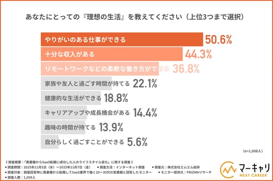 はじめに、SaaS業界へ転職した方がどのような生活を理想としているか質問しました。