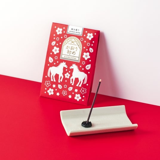 香りは全部で4種類。馬の性格に着想を得た、それぞれ異なるデザインの午のイラストとメッセージつき。手軽なお年賀やお土産にも最適で、香立てが付属しているため、初めてのお香にもおすすめです。