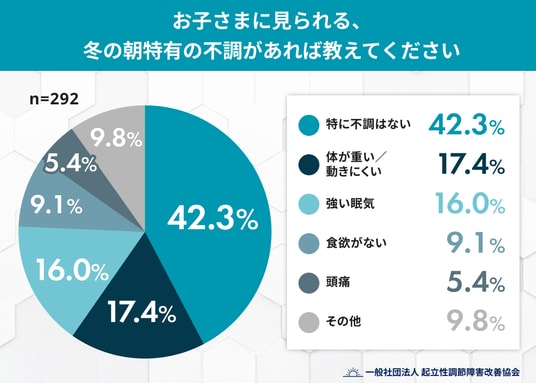 冬になると「子どもが朝なかなか起きられない」という声が家庭から多く聞かれるようになります。気温が低く体が動きづらい、日照時間が短くリズムが乱れやすいなど、季節特有の条件が重なることで、朝の立ち上がりに時間がかかる子どもが少なくありません。一般社団法人 起立性調節障害改善協会は、小学生~高校生の子どもを持つ保護者292名を対象に冬の朝の起き渋りに関する調査を実施。その結果、冬は他の季節に比べて「起きられないと感じることが増える」と回答した家庭が8割を超え、理由や不調、起こし方の工夫など、日常のリアルな課題が明らかになりました。冬の朝にどのようなつまずきが起きているのか、家庭の対応とともに見えてきます。