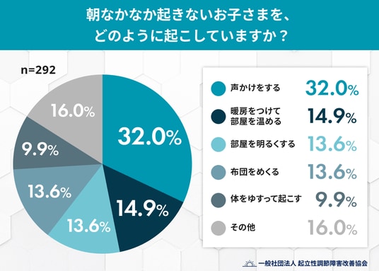 - 家庭での起こし方は「声かけをする」が最多、「部屋を暖める」などの工夫も見られる