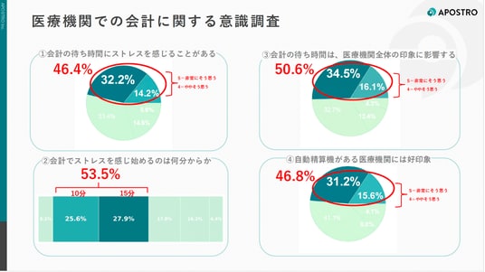 その結果、46.4%が会計待ちでストレスを感じているなど、患者体験に直結する課題が明らかになりました。