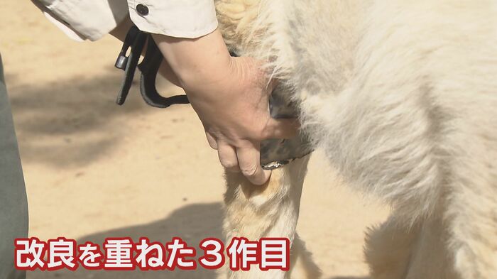 「人間だったら『ここが痛い』とか『ここがちょっときつい』とかって、そういうの言えるんですけど、それが全くないんで『何がいけないんだろうな』というのを考えた」と話す山田先生。何度も試行錯誤を繰り返し、現在は5作目となる。タックは気に入っているようだ。