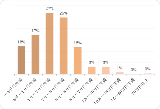 「1万~3万円未満」(1万~2万未満が27%/2万~3万未満が25%)がボリュームゾーンでした。