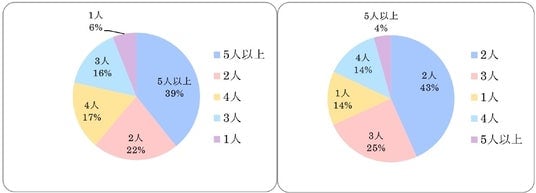 【左図】お正月のおせちは何人で食べる予定ですか? 【右図】回答者の世帯数