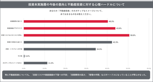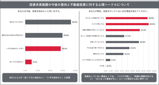投資未経験層の約3人に1人は投資意向がある一方、不動産投資でも空室リスクや初期費用の高さが大きなハードルに。