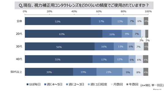 視力補正用コンタクトレンズを使っている方の使用頻度は「ほぼ毎日」53%
