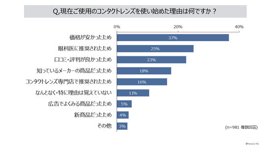 3.現在使用中のコンタクトレンズを使い始めた理由は「価格が安かったため」37%