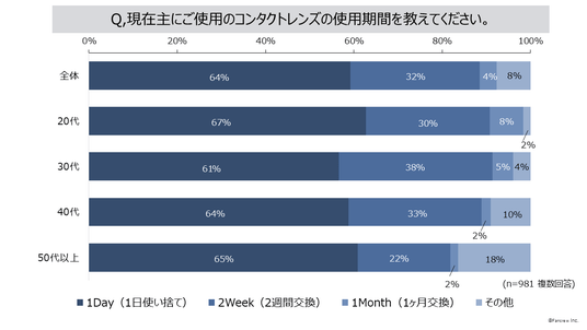 本調査ではこれ以外に視力補正用コンタクトレンズの購入場所や使用する商品を切り替えた経験の有無など全28問で回答を得ています。