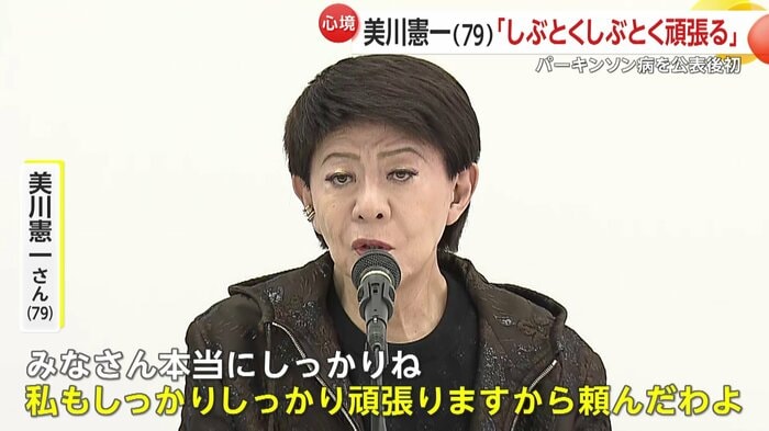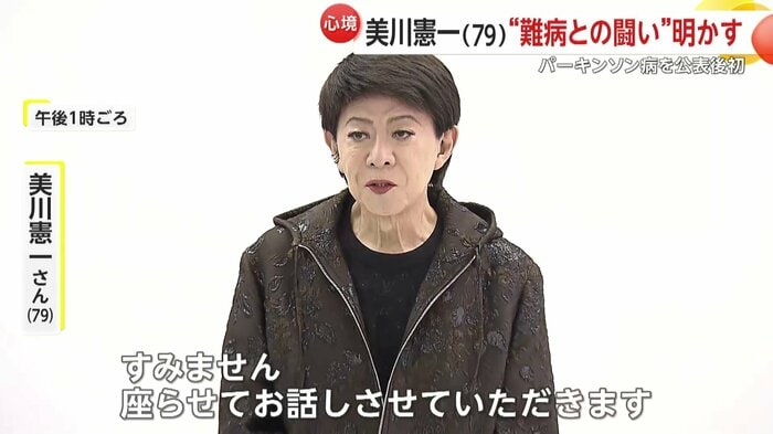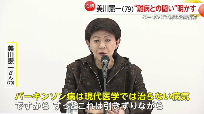 11月、「パーキンソン病」を公表した美川さんの口から語られたのは、病気と闘いながら芸能活動への復帰を目指す、その強い思いだった。