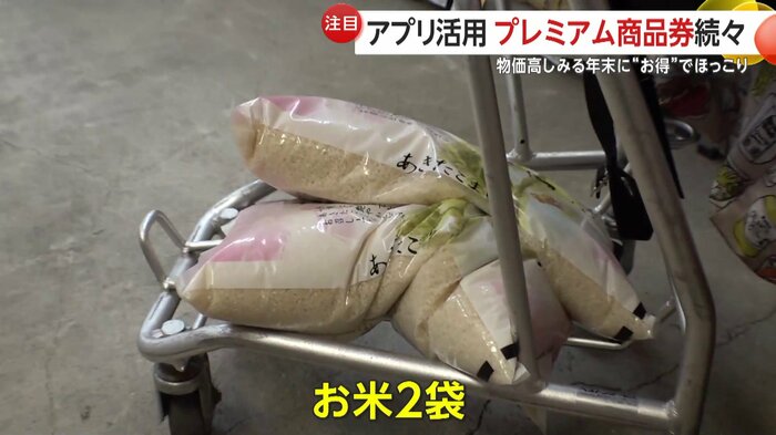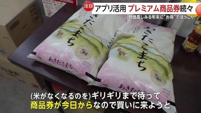 (米がなくなるのを)ギリギリまで待って、商品券がきょうからなので買いに来ようと。商品券を使えるようになったら、お米を多めに買っておこうかな。