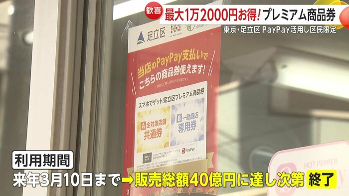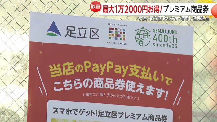 10日、足立区では、PayPayを活用したプレミアムつきのデジタル商品券を販売。
