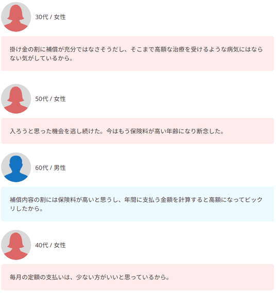 年齢や持病がネックとなり、加入を断念せざるを得ないというケースから、仕組みが複雑でよく分からないという理由まで、さまざまです。