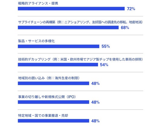 ・ さらなる地政学リスクの高まりに備え、74%の自動車企業がサプライチェーン戦略を積極的に見直している