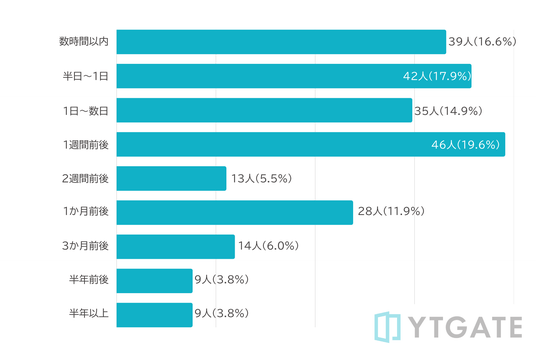 質問6:前回の購入からどれくらい期間が空いていましたか?(n= 235/単一回答)