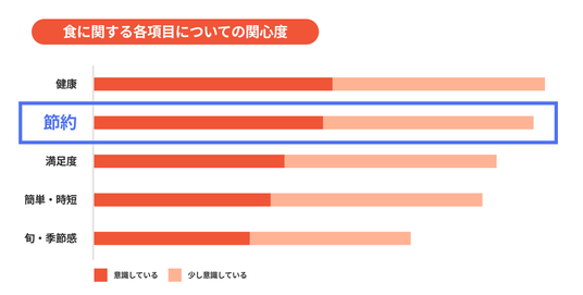 さらに、「食に関する現在の関心度」を尋ねた設問では、「節約」意識が年間を通じて極めて安定して高い水準を維持していることが判明しました。